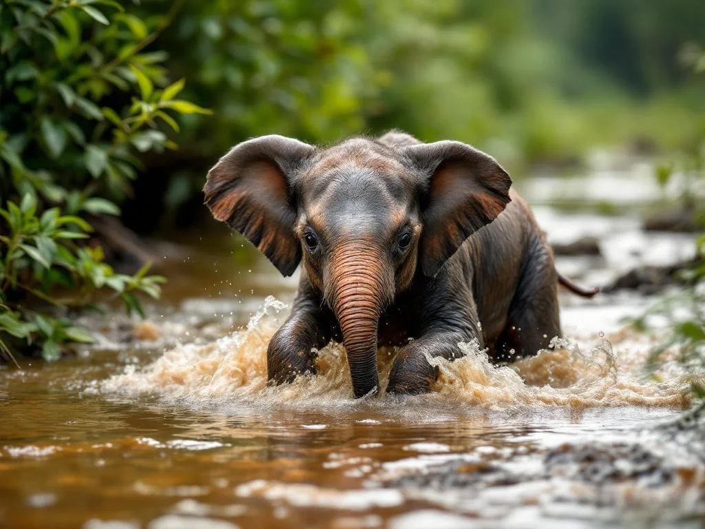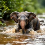 Un Éléphanteau en danger dans la rivière déchaînée du Kruger